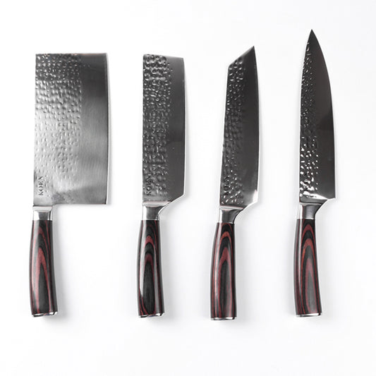 Set 4 Cuchillos KOEN for Chefs Acero Inox. Martillado (Chef 8'’, Nakiri 6.5'', Kiritsuke 8'', Cleaver 7'')