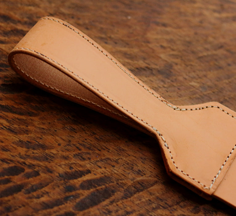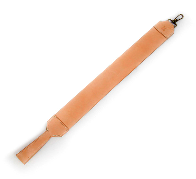 Usar el asentador de filo es el último paso para afilar los cuchillos. Permite eliminar cualquier imperfección que haya quedado al afilar con piedra, lo que nos da un borde liso y pulido. Para usar el asentador, pasamos suavemente el cuchillo a través de ella, con la hoja siempre contra el cuero. Tres o cuatro pasadas de cada lado del filo son suficientes. |