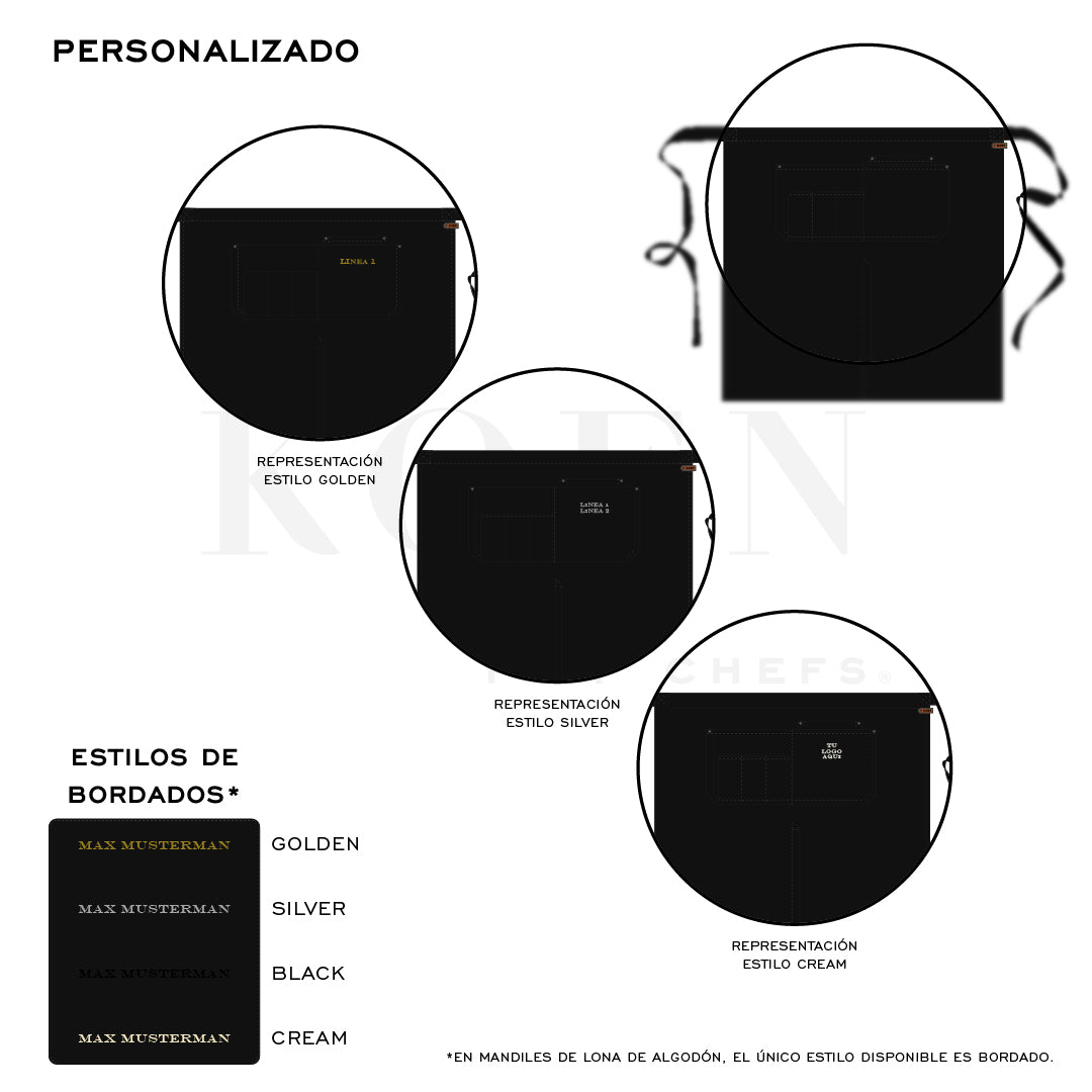 Mandil Berlin Medio KOEN for Chefs Lona de Algodón Color Negro