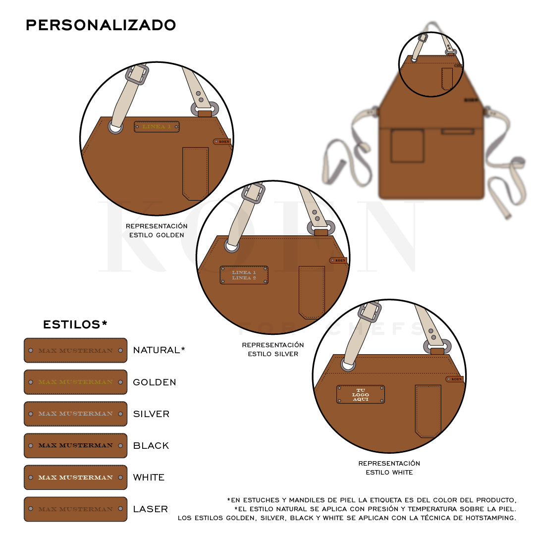Mandil protector para barra fria, coctelería, piso o uso personal. Con correas ajustables y área personalizable en el pecho. Hecho a mano en México por artesanos expertos y procesos de alta calidad. |