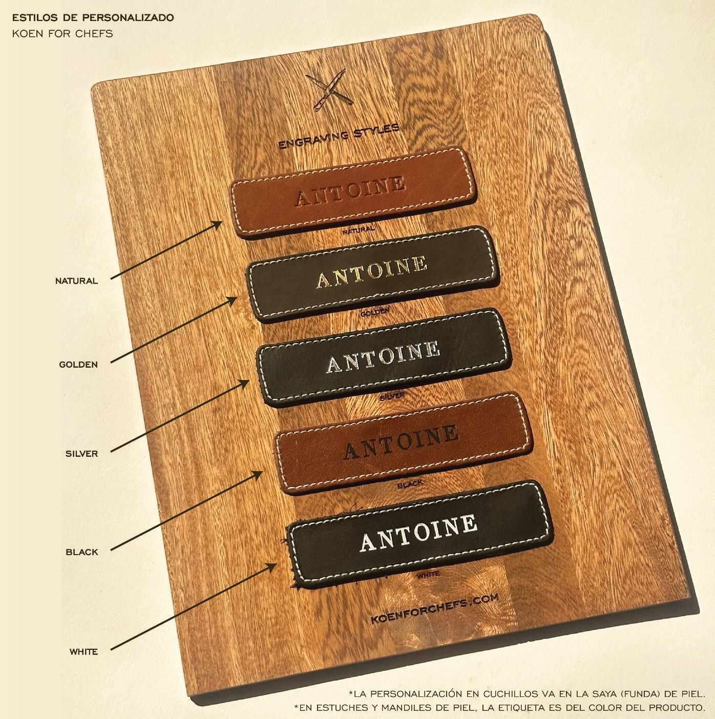 Ideal para un look elegante y atemporal. Con esta técnica creamos un sello metálico con tu logo, que se graba directamente sobre la piel. Se adquiere una sola vez por diseño y se reutiliza en futuros pedidos sin costo adicional. Perfecto si buscas una personalización duradera y con mucha presencia.